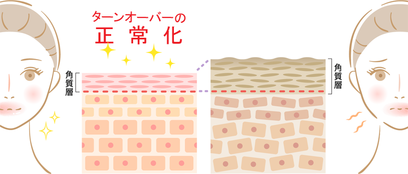 肌のトラブルの改善には、肌のターンオーバーの正常化が必要です